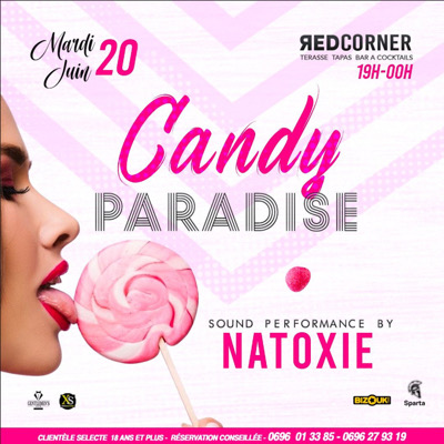 Ce *MARDI* de 19h à MINUIT CAND PARADIS avec Dj NATOXIE On t'attend au REDCORNER pour une soirée EXCEPTIONNELLE. Consommation Obligatoire Réserve Ton Salon VIP dès maintenant 0696.013385