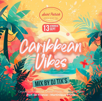 Caribbean Vibes Ce vendredi 13 Septembre à partir de 20h, les meilleurs sons caribéens mixés par @djtixs972 Dans une ambiance unique Cocktails rafraîchissants Convivialité garantie #CaribbeanVibes #SoiréeTropicale #AmbianceCaribéenne