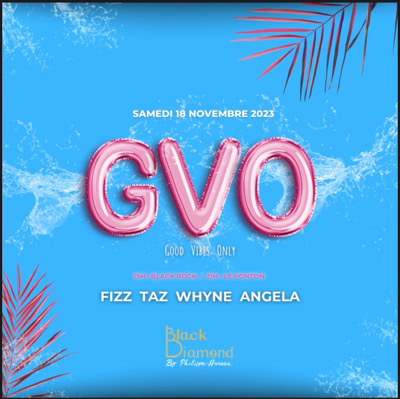 Ce *Samedi 18 Novembre* on se met en mode *🌺✌🏽G.V.O✌🏽🌺* Direction le *📍Black Diamond* pour un Black Rock et un Ponton avec comme seul mots d’ordre *_Good Vibes Only_*🥰❤🔥 Music by : *Fizz* *Taz* *Whyne* *Angela* On compte sur vous TOUS pour arriver Tôt et mettre un *_MAXIMUM D'AMBIANCE_* 🥳🔥 Invitation *Gratuite jusqu’à 17h* vous êtes prévenus alors *Arrivez tôt 😈 Prépare ton meilleur paréo, ton plus beau maillot, ton smile ainsi que ton meilleur mood 💯🍾🍱 *RÉSERVATION DE SA...