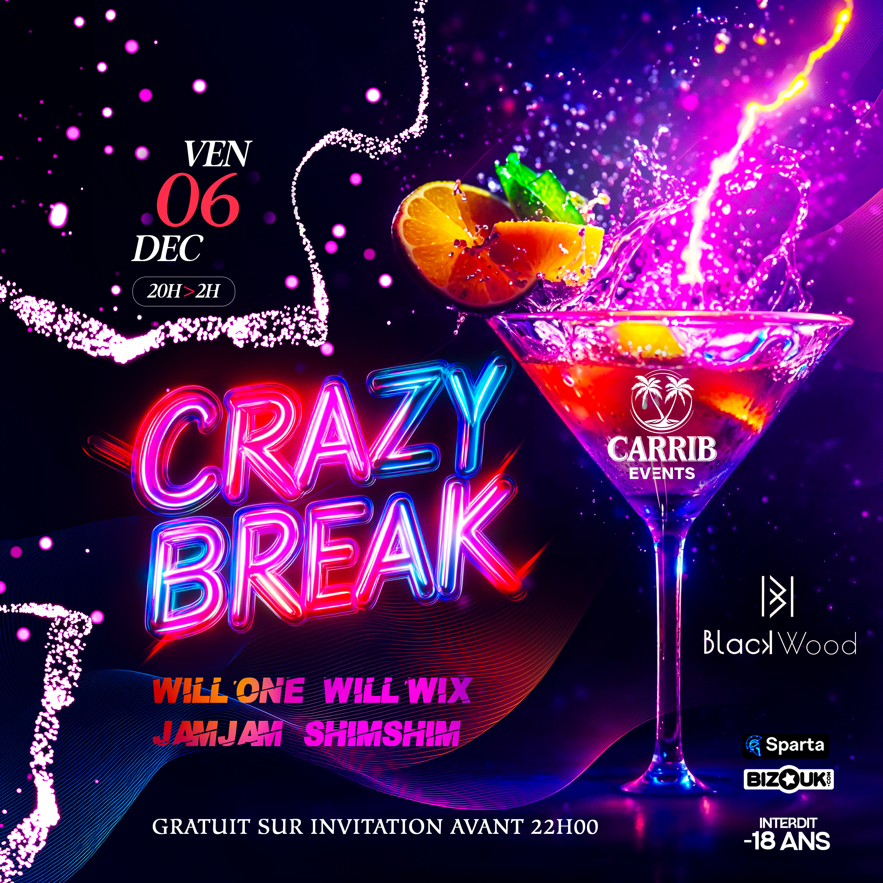 Une pause de folie, ça te dit ? 😏 Nous te donnons rendez-vous : 📆 𝗩𝗲𝗻𝗱𝗿𝗲𝗱𝗶 𝟲 𝗱𝗲𝗰𝗲𝗺𝗯𝗿𝗲 📍 𝗔𝘂 𝗕𝗟𝗔𝗖𝗞𝗪𝗢𝗢𝗗 ⏰ à 𝗽𝗮𝗿𝘁𝗶𝗿 𝗱𝗲 𝟮𝟬𝗵 Pour le retour de la Crazy Break 🥳🔥 Pour te faire décompresser comme il se doit aux platines : 🎧 DJ WILL’ONE 🎧 DJ WILL’WIX 🎧 DJ JAMJAM 🎧 DJ SHIMSHIM 🆓 Récupère vite ton invitation gratuite avant 22h00 : 📲 : Infos & réservations de salon au 0696 77 96 18 (WhatsApp) 🔞 Événement interdit aux mineurs 𝗢𝘂𝘃𝗲𝗿𝘁 𝗱è𝘀 𝟮...