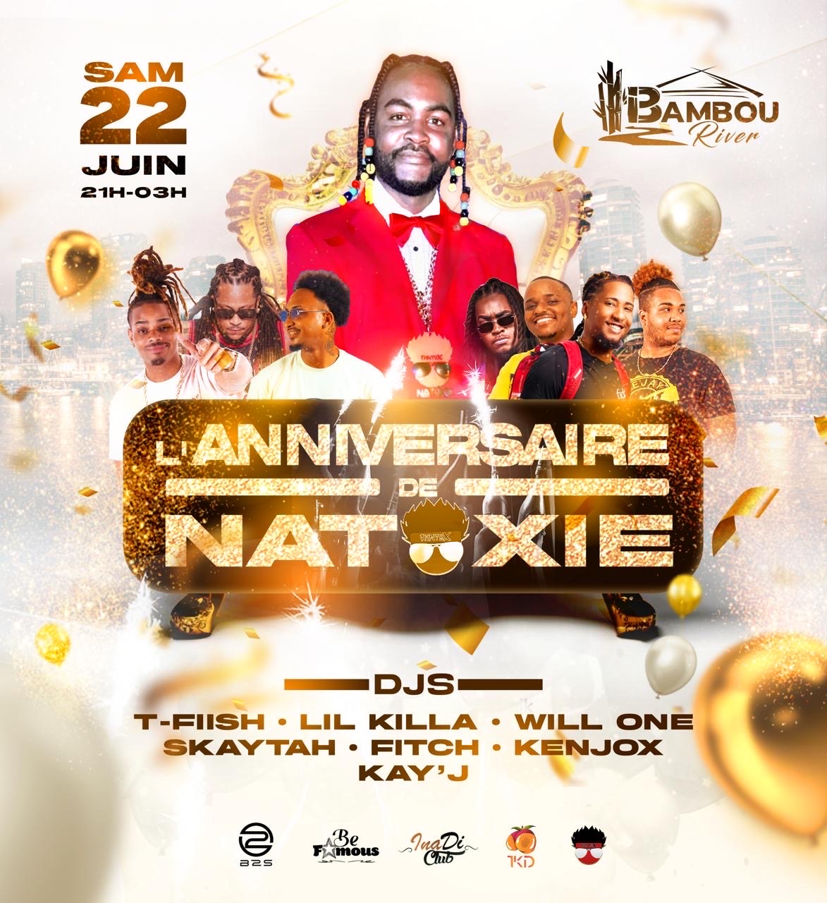 🇲🇶 *M.A.R.T.I.N.I.Q.U.E* 🔥 *L’ANNIVERSAIRE DE NATOXIE*🔥 Natoxie Est Lààààà !!!!!! *Cette Année Beaucoup De Surprises…DJ , ARTISTES , SHOW …* *STAY CONNECT !!!* 📆 *SAMEDI 22 JUIN* ⏰ *21H - 03H* 📍 *BAMBOU RIVER* 🎟️ *VENTE FLASH : 15€* *BIZOUK* ➡️ *SPARTA* ➡️ ⚠️ *SOIRÉE STRICTEMENT INTERDIT AUX MINEURS* ⚠️