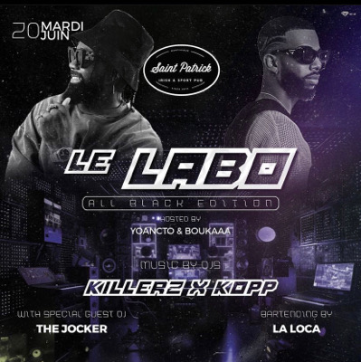 Ton rdv du MARDI revient cette semaine au Saint-Patrick avec une Édition Spéciale: WALL BLACK LE DUO KOPP /KILLERZ @ S'occuperont de mettre l'ambiance lors de cette expérience Musicale riche en Vibes et en Nouveautés She Y Côté Cocktail * LA LOCA* de la Team du Labo s'occupera de vous M - 20 € sur toutes les bouteilles avant 21 h [r - Info ou resa: 0696194006 • C.C Didier Plaza FdF . 17h - 00 h % Tenue correcte exigée . Soyez Stylé ! Soyez Happy!