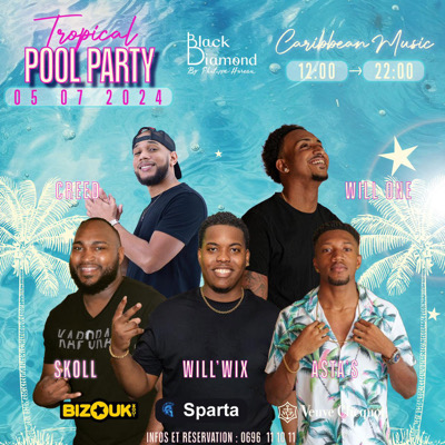 Prépare-toi pour la SIXIÈME édition de la Tropical Pool Party !!! Enfile ta plus belle tenue Pool & Beach et retrouve-nous le vendredi 5 juillet 2024, dès 14h00, au renommé BLACK DIAMOND pour un événement mémorable à la TROPICAL POOL PARTY. À partir de 14h, plonge dans une atmosphère glamour et électrisante avec nos DJ’s exceptionnels : DJ WILL'ONE, DJ SKOLL , DJ ASTA'S, DJ WILLWIX ET DJ CREED !!! Cette édition promet encore plus de surprises… Les billets sont disponibles sur BIZOUK & SPARTA...