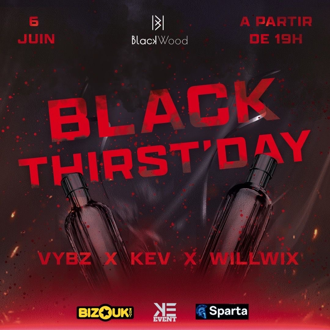 Jeudi 06 Juin C’est La BLACK THIRST’DAY au BLACKWOOD Champagne ou Cocktail tout est bon pour passer un moment de qualité avec les mix de vos djs préférés VYBZ KEV et WILLWIX Tenue et esprit correct exigés