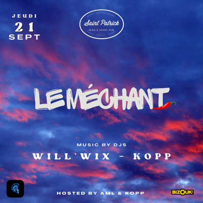 CE JEUDI 21 SEPT RENDEZ-VOUS AU SAINT-PATRICK À PARTIR DE 19H_ pour le Méchant Duo ! Vient prendre la Vibes et un MAXIMUM de pression avant d’attaquer le week end ! WILL’WIX & KOPP pour vous servir UNE OFFRE GIRLY : Vient avec tes copines Une bouteille de vin offerte aux groupes de 4 femmes ou plus avant 21 h 30 . :Arrive tôt c’est on finit à minuit . RÉSERVATION DE SALONS : (Whatsapp only) 0696.06.00.26