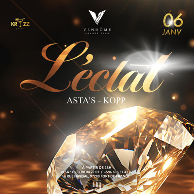 Plongez dans L’ÉCLAT de la nouvelle année🎊 avec nous le samedi 6 janvier au Vendôme à partir de 23h ! L’événement phare de la saison vous offre une soirée incandescente DJ Kopp 🎧 DJ Asta’s🎧 Mesdames, ne manquez pas votre coupe de champagne offerte avant 1h pour débuter cette soirée épique en beauté. Rejoignez-nous pour une soirée illuminée par la musique et l’énergie éclatante de l’instant. 🌟🥂 Let’s shine together at L’Éclat !❤️🔥