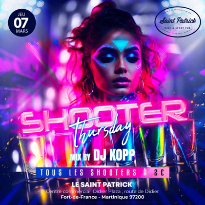 Saint Patrick Irish & Sport pub - SHOOTER THURSDAY - Ce JEUDI 7 Mars ! Carte exclusive à 2 EUROS SUR TOUTES LES PREPARTIONS DE SHOOTERS MAISON !_ Avec pour chauffer encore plus tout cela DJ KOPPP pour un set épicé !!! Ouvert dès 17 h 00 . Arrive tôt on finit à minuit