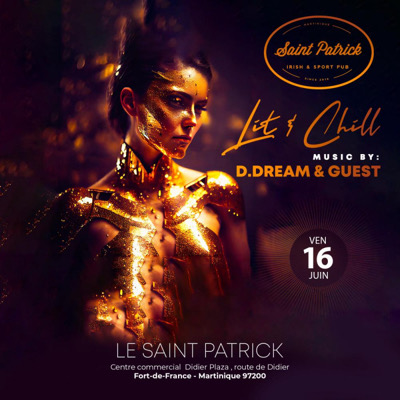*Lit And Chill* (19h30 - 02h) ```Détente et décompression ``` Ce Vendredi 16 Juin ! Direction Saint Patrick !!! _Stand Chicha cocktails et salons à votre disposition pour passer une agréable soirée ._ Pour le côté Chill (ou pas ) *D.Dream* & guest Resa info 0696670060