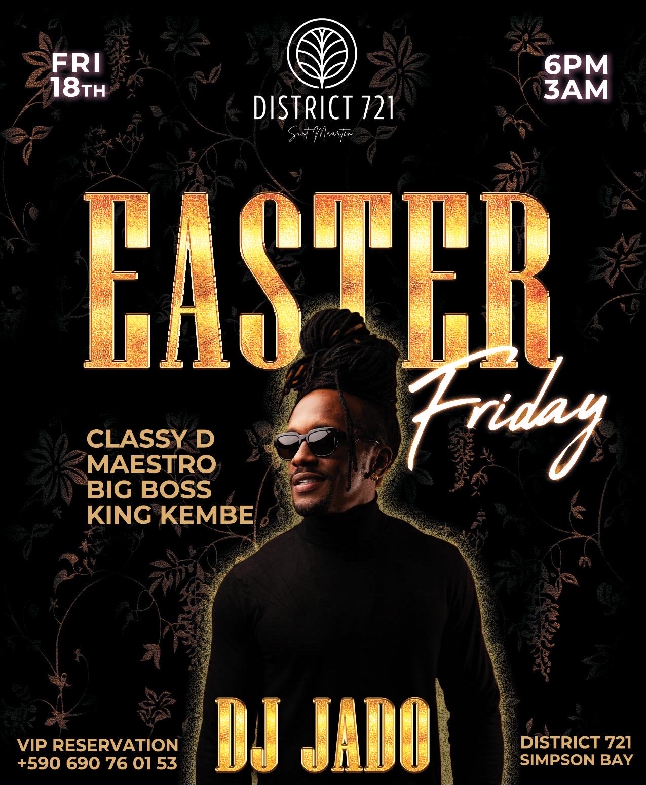 FRIDAY – Easter Friday w/ DJ Jado 🇬🇵 Straight from Guadeloupe, DJ Jado joins the line-up to kick off the Easter weekend 🐣 With Classy D, Maestro, Big Boss & King Kembe You already feel the heat, right? 🔥