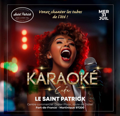 Rejoignez-nous pour une nuit de karaoké pleine de fun, de musique et de bonnes vibes ! Venez chanter vos hits préférés, seul ou avec vos amis, et profitez de l'ambiance festive de l'été. Tous les niveaux sont les bienvenus, de la rockstar au chanteur de douche ! Le karaoké démarre à 19h00, arrivez tôt. FREE Entrée libre Rejoignez-nous au Saint-Patrick, au centre commercial Didier Plaza à Fort-de-France.. Pour plus d'infos, appelez le 0696863950