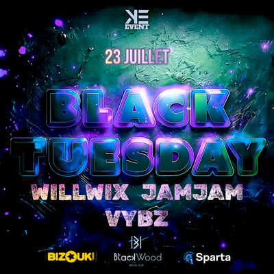 K’ribbean Event te donnes RDV UN MARDI SUR DEUX « La BLACK TUESDAY » Une ambiance de folie de bon cocktails. Alors emmène ton équipe et ta bonne humeur. En maîtres de cérémonie : WILLWIX, JAMJAM et VYBZ