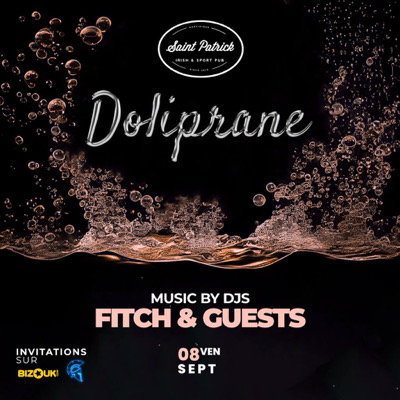 Rdv💊 Ce *Ven 8 sept des 20h * *au Saint Patrick * ▪️Cette semaine a été rythmée par la rentrée et les embouteillages. Naturellement la fatigue, la pression et le Stress 😰 se fait ressentir Un coup de 🫧🫧*DOLIPRANE*🎶🎶 est necesaire 🔥 L’effervescence sera assurée par *DJ FITCH* & Guest 🎟️ Invitation valable avant 22h dispo sur sparta Et Bizouk # VaDireAToutesCopines #VoilaLeBussss #VoilaLeLoup #FollowMeNuhGyal