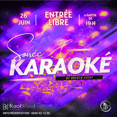 La der des der avant les grandes vacances ! Prêts à déduire vos chansons préférés et relâcher la pression, préparez votre bonne humeur . Libérez l'artiste qui sommeille en vous. Vas y lâche ta voix Ce Mercredi 26 Juin à partir de 19h . Venez entre amis ,en famille, en amoureux, en convivialité. Entrée Libre Possibilité de restauration sur place : Cocktails, Assiettes charcuteries/Fromages, Croc-monsieur... Le Blackwood 24 Zone canal cocotte Ducos Infos et résa: 0696 921200