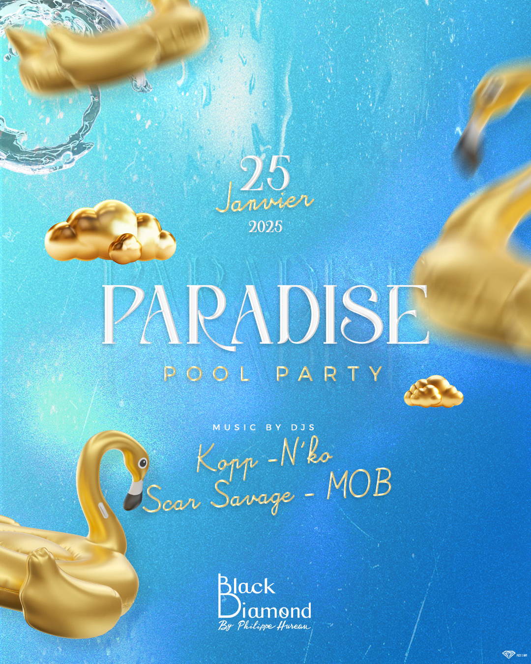 ✨ Paradise Pool Party ✨ Rejoignez-nous le 25 janvier 2025 pour une expérience inoubliable au cœur du luxe et de la fête ! Plongez dans une ambiance paradisiaque, entouré d’une atmosphère chic et rafraîchissante. 🏖️🌊 🌟 Au programme : • Cocktails raffinés pour enflammer vos papilles 🍹 • Musique entraînante avec les meilleurs DJs live 🎶 • Décor féérique avec des touches dorées et éclatantes ✨ • Piscine scintillante, bonne humeur et vibes estivales 🌞 📍 Lieu : Black Diamond by Philippe H...