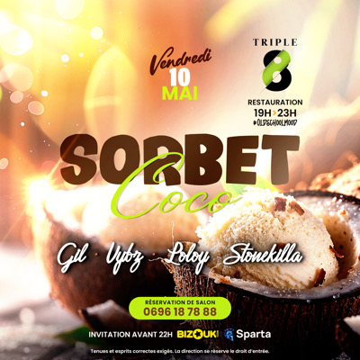 🌴 *M.A.R.T.I.N.I.Q.U.E* 🌴 🥥 *SORBET COCO* 🥥 *#OldSchoolMood* Pour Cette Édition #OldSchoolMood *DJ GIL* Nous Rejoint 🔥 *VYBZ • LOLOY • STONEKILLA* 📌 *VENDREDI 10 MAI DÉS 20H* 🍽️ *RESTAURATION POSSIBLE DÉS 19H UNIQUEMENT SUR RÉSERVATION AU 0696 18 78 88.* 🎟️ *BIZOUK* ➡️ https://my.bizouk.com/sorbet-coco-1 🎟️ *SPARTA* ➡️ Notre IG : https://www.instagram.com/sorbet__coco__?igsh=YmY0NWtyZ2ViZncz&utm_source=qr