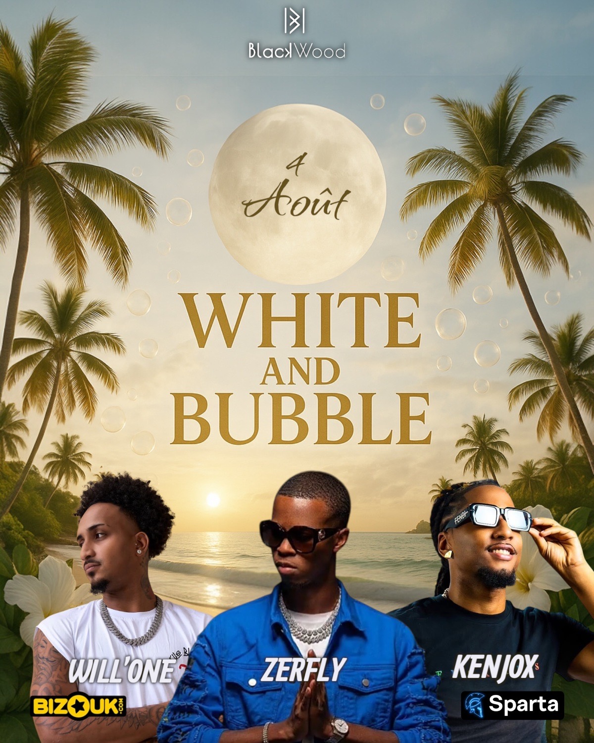 WHITE AND BUBBLE 04 AOUT – SAVE THE DATE ! Une nuit chic, blanche & explosive DJs : WILLONE KENJOX ZERFLY Ambiance garantie Champagne, vibes & élégance au programme DRESS CODE : CHIC EN BLANC