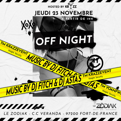 ‘’Bien habillé, avec ton côté mal élevé’’😈 Rejoins-nous chaque jeudi à partir du 23 Novembre pour une expérience nocturne épique ! 🌙✨ 🇺🇸KRAZZ ÉVENT🇺🇸t'invite à "OFF NIGHT" au Zodiak à Fort-de-France. Attends-toi à la soirée la plus HYPE de ton île. Habille-toi avec style et apporte ta meilleure énergie💃🎩 🎧DJ FITCH 🎧DJ ASTAS On s’occupe du reste ! Prépare-toi pour une nuit inoubliable. À toi de jouer 🫶 #OffNight #ExpérienceHYPE