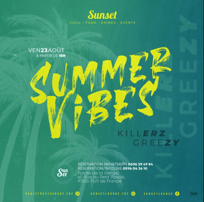 SUMMER VIBES YOLO TO THE FULLEST BABYYYY! Sunset Restaurant & Lounge Restaurant• Bar •Tapas •Cocktails Restaurant: @sunsetrestaurant.fdf Lounge: @sunsetlounge.fdf SUMMER SCHEDULE •18H à 00H • MARDI à JEUDI 18H à 02H • VENDREDI 18H à 02H • SAMEDI & DIMANCHE 0696294984 0696540530 0596043610 † Pointe de la Vierge, 60 Rue Du Petit Pavois, Fort-de-France 97200, Martinique