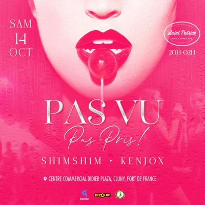 Tu connais l'expression « An ba fè'y ? » PAS VU, PAS PRIS! Ce Samedi 14 Octobre à SAINT-PATRICK C'est l'endroit où tu dois être, dans la discrétion bien sûr... Music By Djs Kenjox /Shimshim • INFOS/RÉSA +596 696 724 773