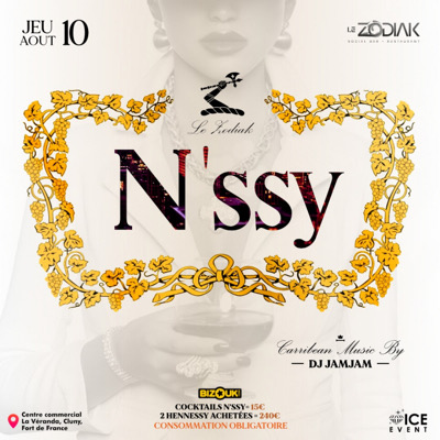 Servi avec un glaçon ou une bouteille, voir un merveilleux cocktail N'SSY Le temps d'une pause autour d'une bonne chicha DJ JAMJAM, le méchant 2 HENNESSY = 140€ 1 COCKTAILS N'SSY = 15€ Invitations JUSQU'À 21H30