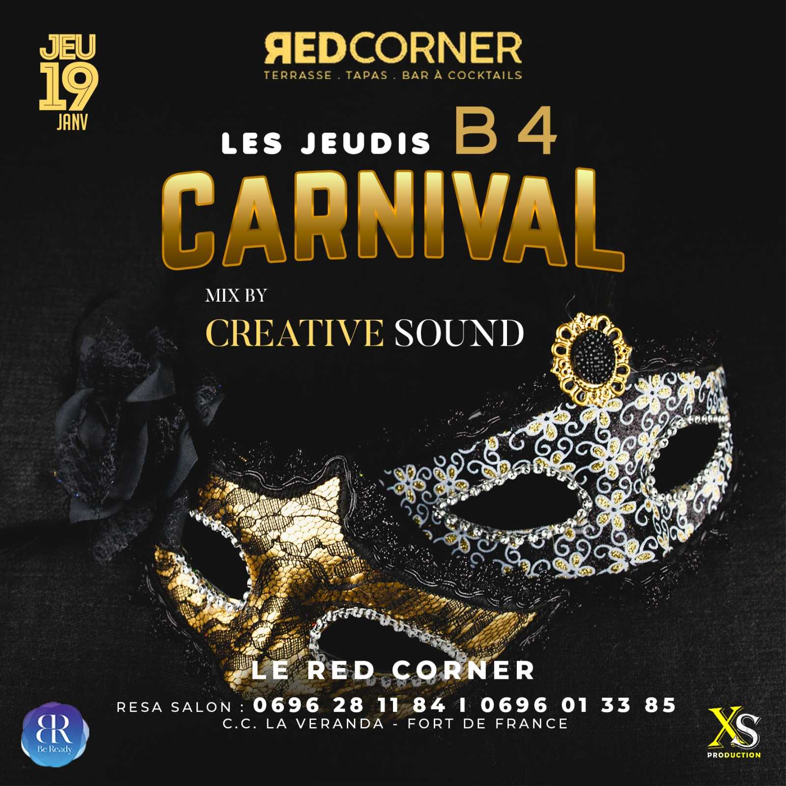 ce jeudi 19 Janvier dès 19h, On t'attend au REDCORNER pour la B4 CARNIVAL avec CREATIVE SOUND.
