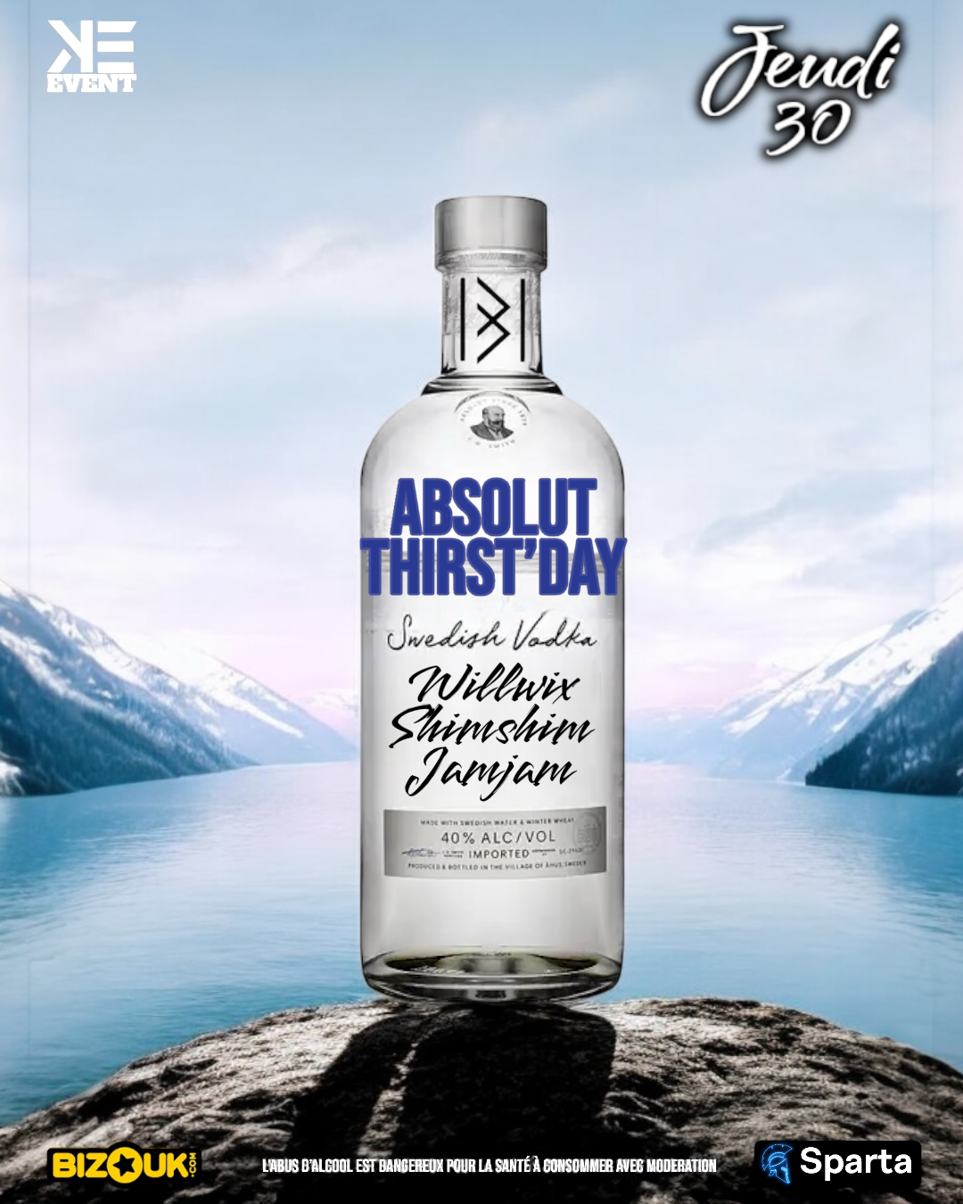 Jeudi 30 Janvier ABSOLUT THIRST’DAY LA DER RENDEZ-VOUS AU BLACKWOOD POUR UN AFTERWORK EN MODE VOLKA AU PLATINE: WILLWIX SHIMSHIM JAMJAM ET POUR L’OCCASION ON VOUS METS BIEN JUSQU’A 23H c’est HAPPY HOUR DEUX BOUTEILLES DE VODKA POUR 160€