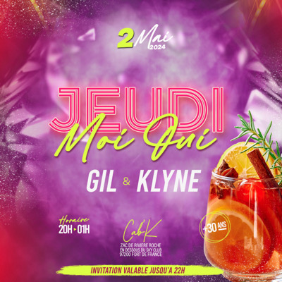 On se voit Jeudi ? Nous on dit oui ! Rendez-vous, ce jeudi 11 avril au @cabk.martinique Réservé aux +30ans : tenue et esprit corrects exigés CAB’K à FORT-DE-FRANCE mix by GIL & KLYNE Rdv dès 20h, le jeudi est à nous Invitation GRATUITE valable jusqu’à 22h, après 10€