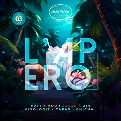 L’Apéro est l’événement incontournable de la semaine dans une ambiance décontractée. Venez profiter d’un moment de convivialité autour de boissons soigneusement sélectionnées et de délicieux tapas. Happy hour jusqu’à 21h Entrée libre Rejoignez-nous au Saint-Patrick, au centre commercial Didier Plaza à Fort-de-France. Pour plus d’infos, appelez le 0696863950 l