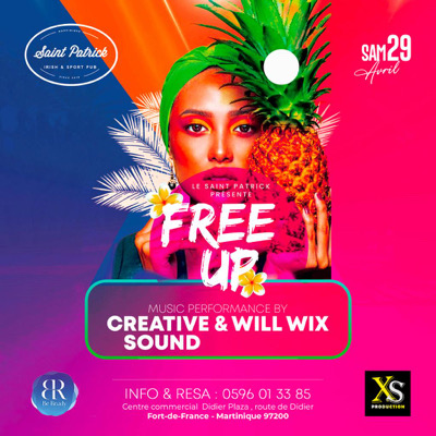 Événement !!! 🎉🤩🎊 Ce *Samedi 29 Avril* dès 19h *👑CREATIVE SOUND* & *🎧Dj WILL WIX* te donnent RENDEZ VOUS au *📍ST-PATRICK* pour une soirée inoubliable *🍍FREE UP!🍉* _By BEREADY & la TEAM XS_ Un ✈️voyage inoubliable dans le 🕰️passé jusqu'au présent avec les MEILLEURS TUBES de tous les temps. _*🎼 Raggae Dancehall Zouk Trap Bouyon House et bien plus encore.*_ 🎊🎉 *RÉSERVES TON SALON* dès maintenant 😏 0696.013385 0696.670060 _⚠️La Direction se réserve EXCLUSIVEMENT le droit d'entrée....