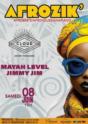 *🎶 AFROZIK 🎶* Samedi 8 juin, Afrozik revient au Cloud Rooftop Bar ! Préparez-vous à plonger au cœur de l’Afrique pour un voyage musical unique autour de l’Afrobeat, de l’Afrohouse et de l’Amapiano. Aux commandes, deux spécialistes des sonorités afro : Mayah Level et Dj Jimmy Jim, prêts à enflammer la piste de danse Rendez-vous samedi 08 juin à 19h, pour une expérience immersive dans un cadre agréable avec vue panoramique sur la ville. Les places sont limitées, alors réservez sans attendre sur...