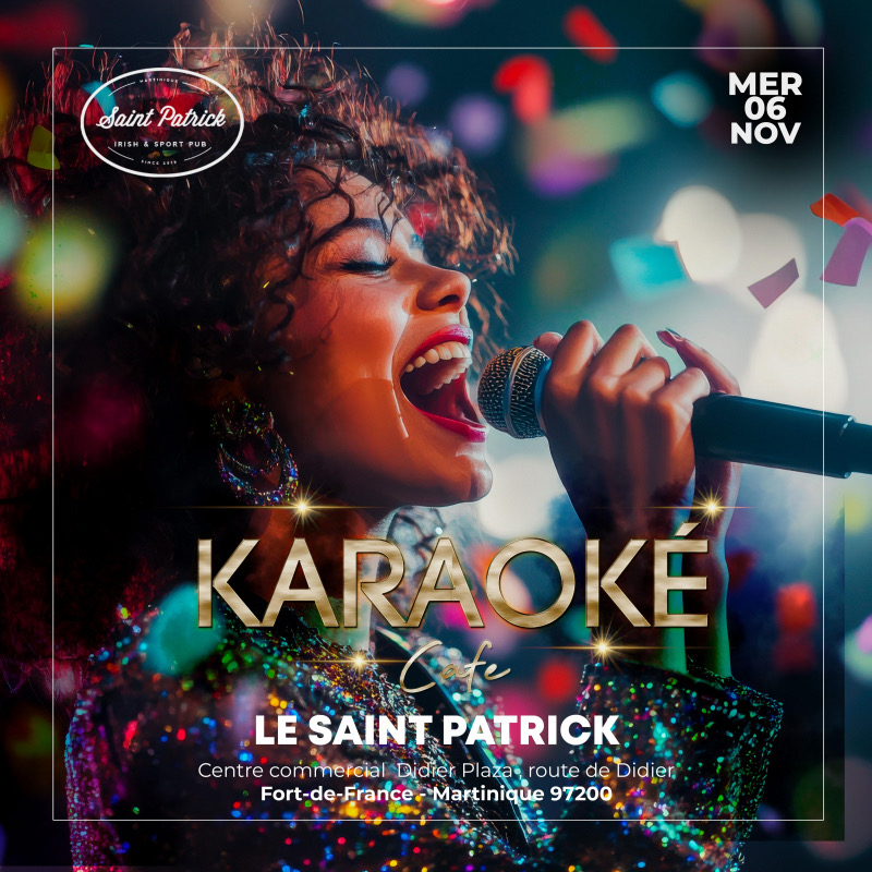 Rejoignez-nous pour une nuit de karaoké pleine de fun, de musique et de bonnes vibes ! Venez chanter vos hits préférés, seul ou avec vos amis. Le karaoké démarre à 19h00, arrivez tôt. Entrée libre Rejoignez-nous au Saint-Patrick, au centre commercial Didier Plaza à Fort-de-France. Pour plus d’infos, appelez le 0696863950