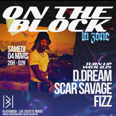 Samedi 4 mars, on ouvre les portes de la Zone! Dans un nouveau lieu exclusif, rejoins l'expérience On The Block, le seul événement entièrement dédié à la culture street, rap, hip hop et trap en Martinique. Des samples brûlants, des oldies inoubliables, des pépites inconnues, sélectionnés par nos maîtres selecta DDream, Scar Savage & Fizz. Révise tes classiques, prépare tes sneakers, et n'oublie pas de réserver ton salon au 0688396645.