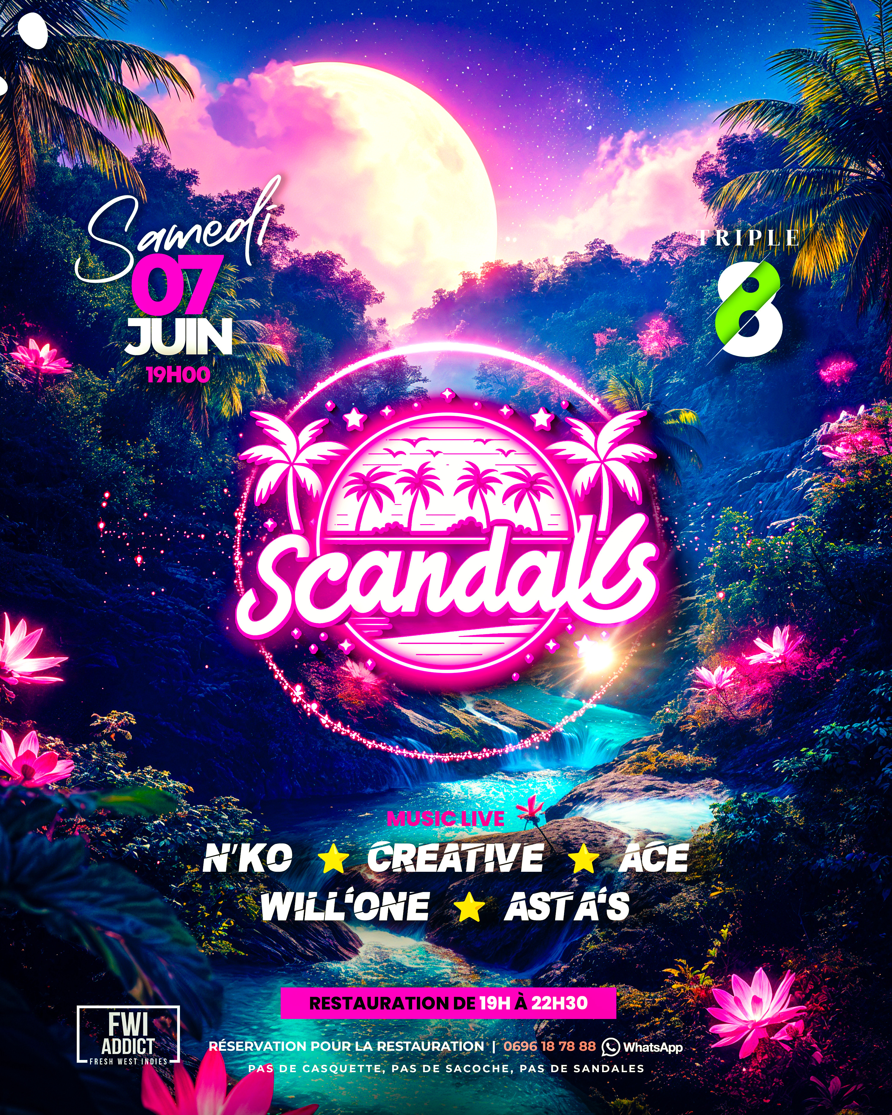 ☄️SCANDALS🌪️ 📍Au TRIPLE 8 – Ce Samedi 7 Juin 2025 💥 Préparez-vous pour une nuit hors du commun… la SCANDALS retrouve ses quartiers au Triple 8 pour une soirée qui s’annonce incandescente ! 🥗Dîner à partir de 19h 🔥 Soirée : à partir de 22h00 Aux platines, une line-up explosive : 🎧N’Ko - Ace - Créative - Will One - Asta’S Dress code : Une touche de rose – Osez le détail qui fera la différence ! 🔥Ambiance Shatta, rythmes envoûtants et une atmosphère où tout peut arriver… Êtes-vous prê...