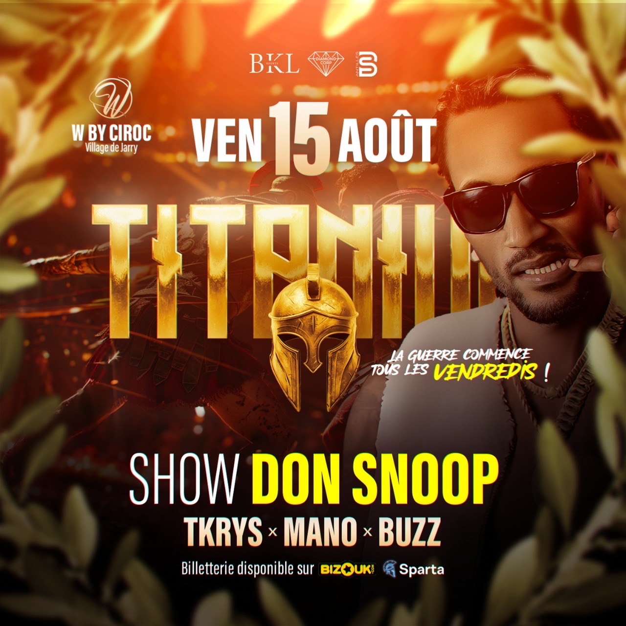 TITANIUM – Tous les vendredis de l’été BKL,B2S et Black Diamond te donnent rendez-vous chaque vendredi au W Club by Cîroc pour plonger dans l’univers TITANIUM : une soirée unique, entre puissance, ambiance et pure euphorie ! Rendez vous le vendredi 15 août ! Aux platines : afro, bouyon, dancehall, trap… Des transitions de folie, du son lourd, juste ce qu’il faut pour t’ambiancer jusqu’à l’aube. Grosse annonce !!!! DON SNOOP EN SHOW CASE pour enflammer la soirée !!! Ton seul obje...