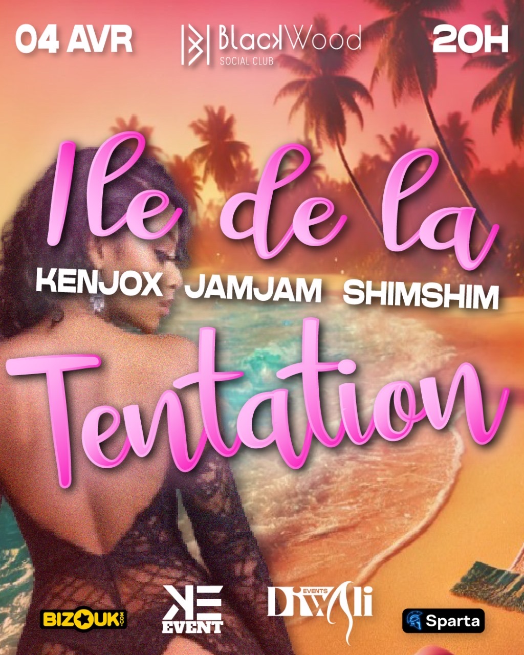Diwali Events & K-Events vous propose plongez dans une nuit envoûtante et sensuelle avec Île de la Tentation, une soirée unique qui promet une ambiance torride et festive au BlackWood Social Club. Au programme : • DJ sets enflammés avec Kenjox, Jamjam et Shimshim pour vous faire vibrer toute la nuit. • Une ambiance exotique et glamour inspirée des plages paradisiaques. • Des surprises sensuelles et des animations caliente pour pimenter votre soirée. Date : Vendredi 4 Avril Heure : 20h00 L...