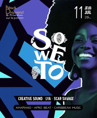 SOWETO le premier concept 100% Afro-Caribéen débarque au Black Diamond le 11 juillet dès 20h ! Au programme : de l'AFRO, de l'AMAPIANO et du Made in Caribbean ! Les amoureux de good Energy , les danseurs invétérés, les adeptes de good vibes, cette première édition vous parlera !