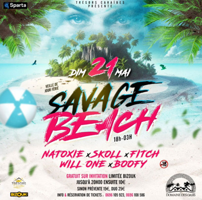 🚨 🌪️ALERTE MAXIMALE🌪️🚨 *DIMANCHE 21 MAI*(veille jour férié) 18h-03h 📍*Domaine de l'Oasis* Une Vague De Chaleur Va Déferler sur la Martinique 🥵 Séance de Sport intense conseillé par *Tresor Caraïbes* Qui t'a concocté une *SAVAGE BEACH*⛱️🏄🏾♀️🌴 De Folieeeee Enfilez vos Sandales & vos Shorts de Bain *pour les Gars* *Mesdemoiselles* sortez la meilleure parure de plage..bikini paréo..tenue décontractée...légère..(Si zot lé 🤷🏾♂️) Attachez vos Bouées..et ne succombez p...