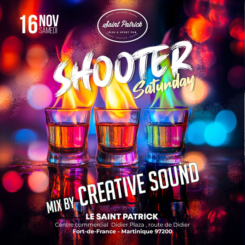 CE SAMEDI 16 NOVEMBRE - SHOOTER SATURDAY - _Carte exclusive à 2 EUROS SUR TOUTES LES PRÉPARATIONS DE SHOOTERS MAISON !_ Avec pour chauffer encore plus tout cela CREATIVE SOUND pour un set épicé !! Ouvert dès 19 h 00 .