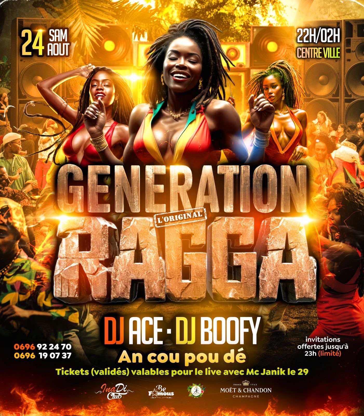🌟*GENERATION RAGGA L'ORIGINAL*🌟 Édition *An cou pou dé* 🎁 🔥 _Pour l’avant dernier épisode de la saison estivale nous avons décidés de vous faire voyager dans le temps ⌛️_ 🕺🏽💃🏽Nous serons En Mode *COMME À L'ÉPOQUE* Des Sound Systèm🕺🏽💃🏽 📆 *CE SAMEDI 24 AOÛT* 📍 *THE MARK à FDF* ⏰ *22H- 02H* Pour Mettre Le Feu 🔥 🎶 🎧 *BOOFY • ACE* 🎧 🎫 *GRATUIT SUR INVITATIONS JUSQU'À 23H* *Bizouk :* *Monipass :* 🎟 *10€ (limité)* 🎟 *20 € ensuite* . _🚨PS: Tickets valables pour le live ...