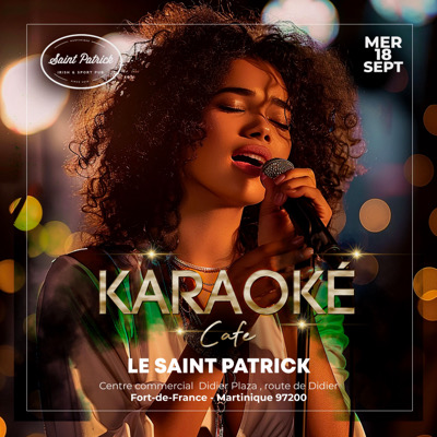 Rejoignez-nous pour une nuit de karaoké pleine de fun, de musique et de bonnes vibes ! Venez chanter vos hits préférés, seul ou avec vos amis. Le karaoké démarre à 19h00, arrivez tôt. Entrée libre Rejoignez-nous au Saint-Patrick, au centre commercial Didier Plaza à Fort-de-France. Pour plus d’infos, appelez le 0696863950
