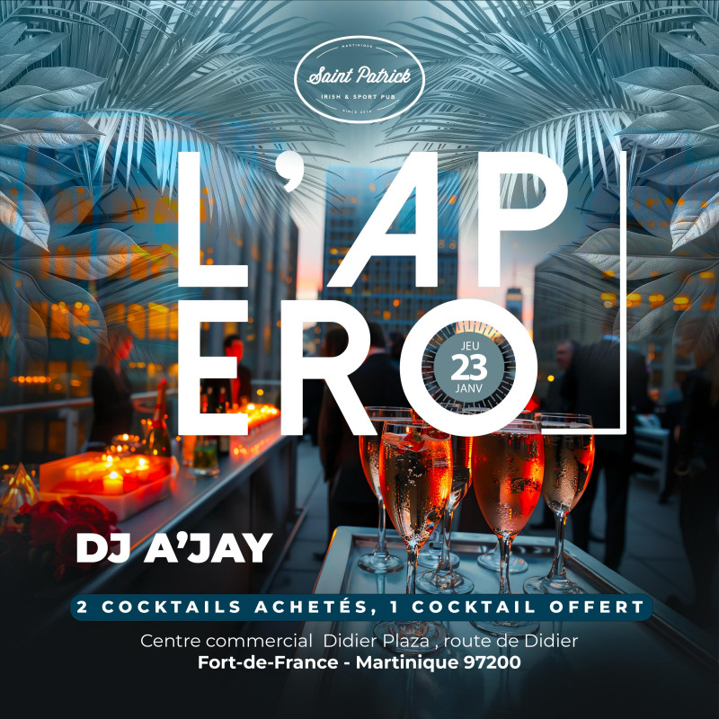 HAPPY HOUR ALERT Viens profiter de notre offre. 2 cocktails achetés = 1 offert. Dj A’jay aux platines Viens avec tes amis pour décompresser et partager un bon moment autour d’un cocktail !