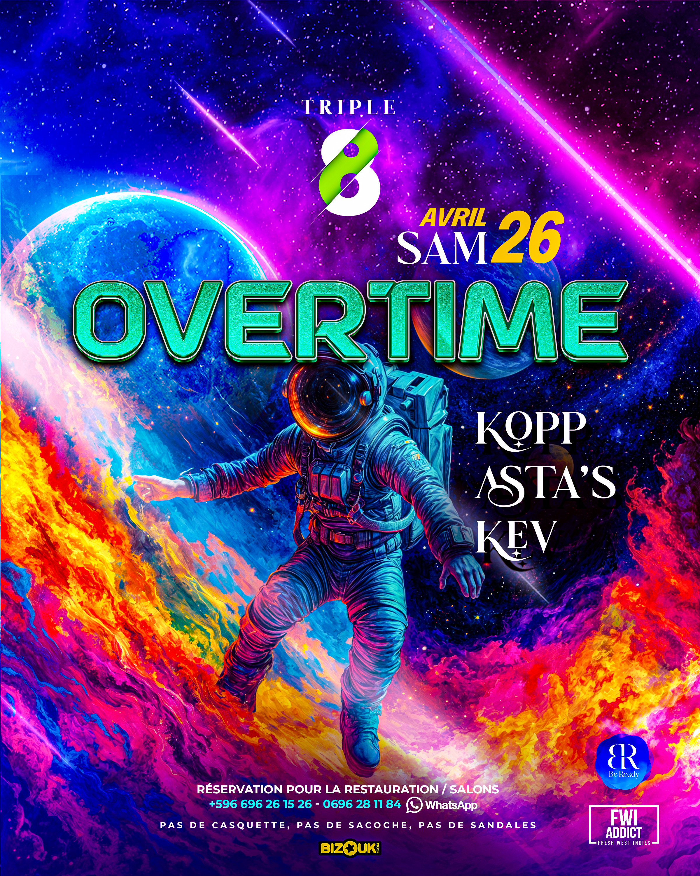 Samedi 26 avril au TRIPLE 8 des 19h 🚀OVERTIME – Quand la nuit déborde… ⏰✨ Une soirée ouverte à tous : toutes les vibes, tous les styles, toutes les envies ! Chill, classe ou déjanté — viens comme tu vibres ! 💃🏽🕺🏽 Good vibes, musique enivrée, cocktails bien dosés 🍹, Des regards qui se croisent, des corps qui dansent… OVERTIME, c’est ta zone libre. Sans pression, juste du kiff. 🎧Avec Dj KOPP ASTA’S KEV Le Triple 8 t’attend… Dresscode : Toi, en version extra. Sans plus tarder récupère t...