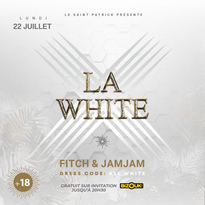 La White La White c'est le plus gros concept de l'île tous les lundis au saint Patrick. DJ WILL ONE & SHIM SHIM Dress code : Tout en blanc EVENEMENT INTERDIT AU MINEUR Ouvert dès 19h