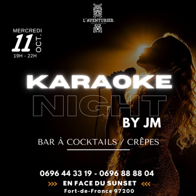 🎤🎶 Hello mes singers 🎤🎶 Vous pensiez que nous vous avions abandonner? Jamais 🫡😉toujours là fidèle au poste. Pour votre plus grand plaisir nous sommes de retour 🗣🎙. Comme d'habitude ça va chanter 🎤 🔥💃🏽🕺🏽. ➡️Rendez-vous Mercredi 11 octobre pour ton Karaoké. ➡️ Karaoke mix by JM ➡️Possibilité de restauration sur place . ➡️ Ouverture 19h en face du sunset ‼️ 📍 rue du petit pavois fort de france Infos et résa📱: 0696 88 88 04/ 0696 44 33 19