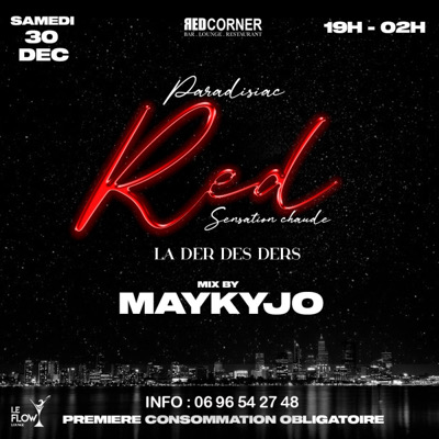 Viens finir l’année en beauté avec nous pour la soirée paradisiac red sensation chaude et oui, la Der Des Ders avec dj maykyjo de 20h à 02h au Redcorner 0696542748