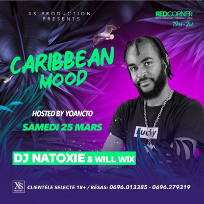 Ce *SAMEDI* de 19h à 2h du Matin CARIBBEAN MOOD avec NATOXIE et Dj Will Wix pour un Maximum d'ambiance Rap Hip Hop Electro House Dancehall Bouyon Zouk etc Consommation Obligatoire Réserve Ton Salon VIP dès maintenant 0696.013385