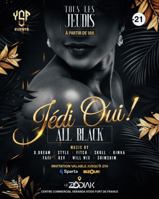 Le non n’existe pas chez nous… Jédi oui!!! Le dress code ?? ALL BLACK… Si tu es all black, tu ne payes pas ! C’est notre devise. Chaque jeudi à partir de 18 heures, nous ouvrons nos portes pour un événement inoubliable. Situé dans notre tout nouveau lieu, centre commercial la véranda à Cluny , le Zodiak vous promet des soirées mémorables et une ambiance incroyable. Notre équipe talentueuse de DJ's fitch et style vous fera vibrer aux rythmes des derniers hits, jusqu'au bout de la ...