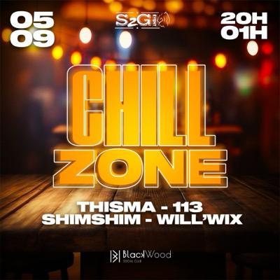 Yep la team, la S2G n’en a pas encore fini avec on t’attend avec impatience pour la 1e édition de la Chill Zone Préparez-vous pour une soirée de malade Ça se passe le 5 septembre à 20h, soyez là pour une soirée mémorable Avec tes DJs : Thisma, 113, Will wix et Shimshim Date : 5 septembre Heure : 20h Lieu : Blackwood