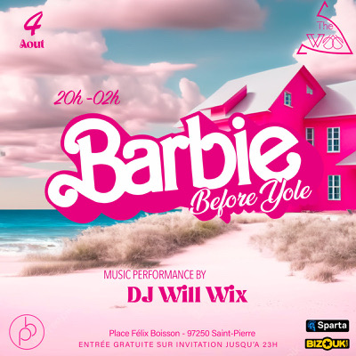 Vendredi 4 août, Barbie te donne rendez-vous pour un Before Yole ! 20h - 02h.. THE WOO - Ton nouveau Bar Tendance [Place Félix Boisson, 97250 Saint-Pierre] Dresscode : FULL PINK ! Performance musicale par Dj Will Wix Cocktails - Chichas & Bikinis Infoline : 0696 944 882 “ LA DIRECTION SE RÉSERVE LE DROIT D'ENTRER TENU & ESPRIT CORRECT EXIGÉE ”
