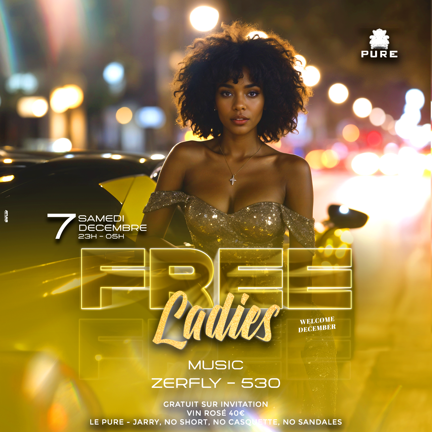 FREE LADIES LA FREE LADIES revient au Pure dès 23H00. Pour la reprise on reprend les bonnes habitudes et on garde la même attitude que cet été, c'est gratuit pour vous les filles avec une conso obligatoire. RDV AU PURE a JARRY.
